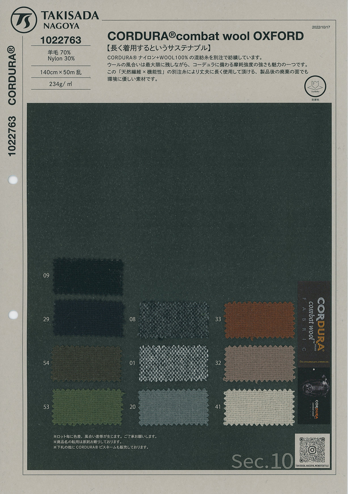 #CORDURA#ウール#オックス#オックスフォード#コーデュラ#サスティナブル#丈夫#天然×機能