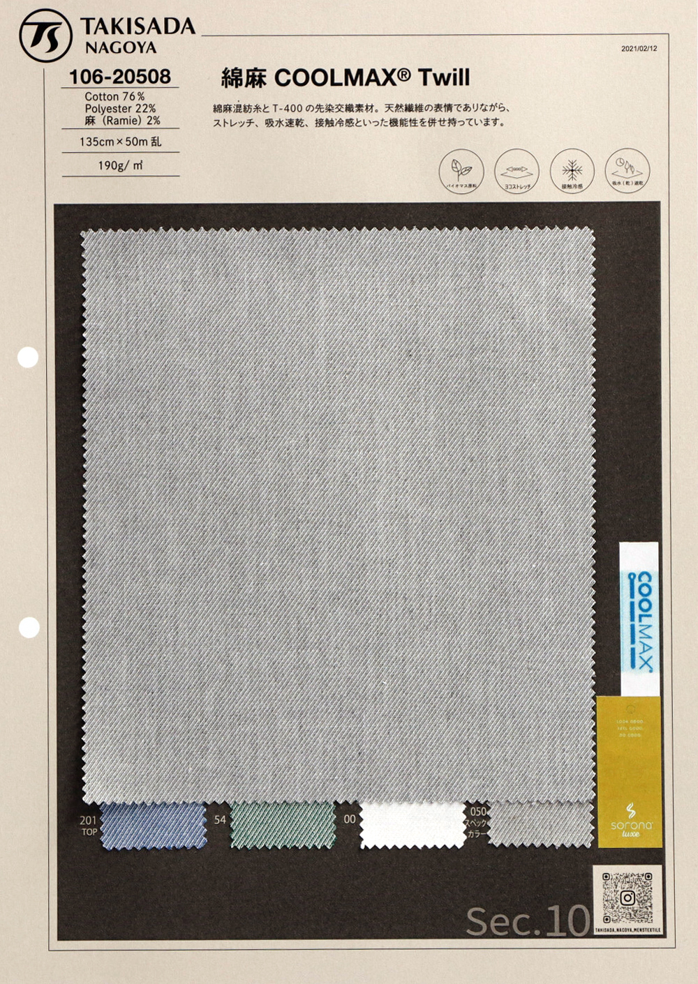 生地名:106-20508 綿麻COOLMAXストレッチ ツイル