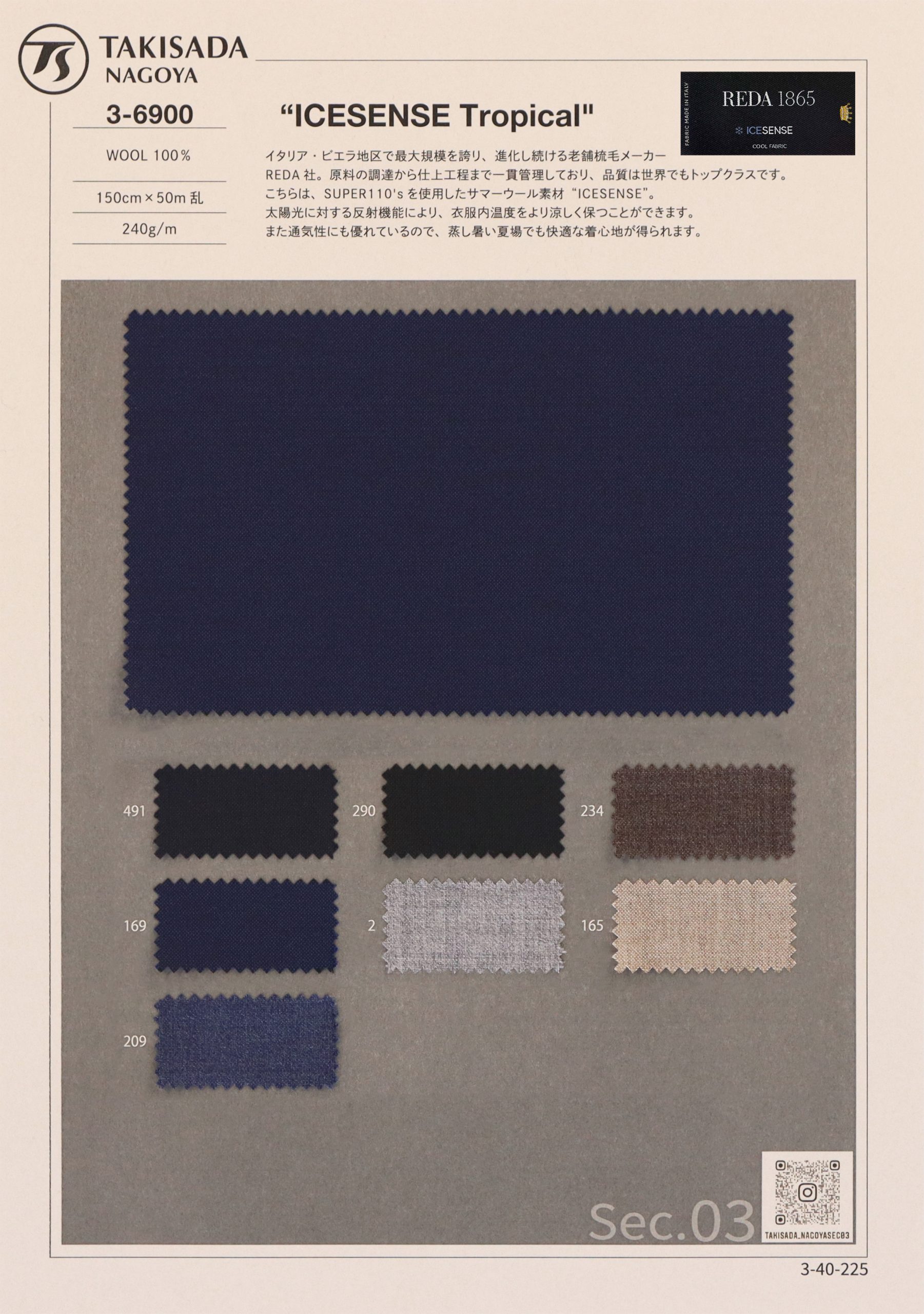 こちらは、SUPER110'sを使用したサマーウール素材“ICESENSE”。