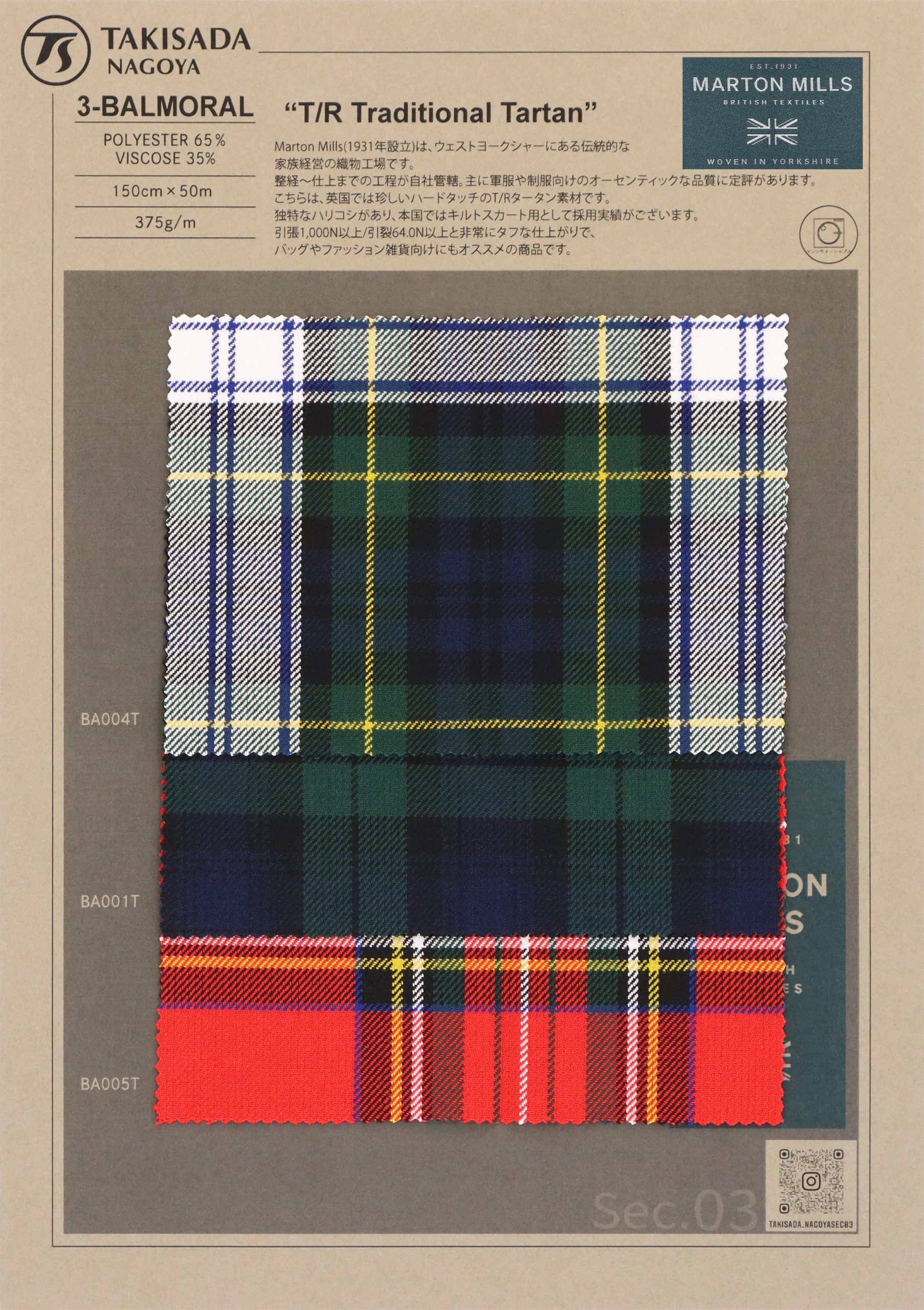 品名 :“T/R Traditional Tartan”