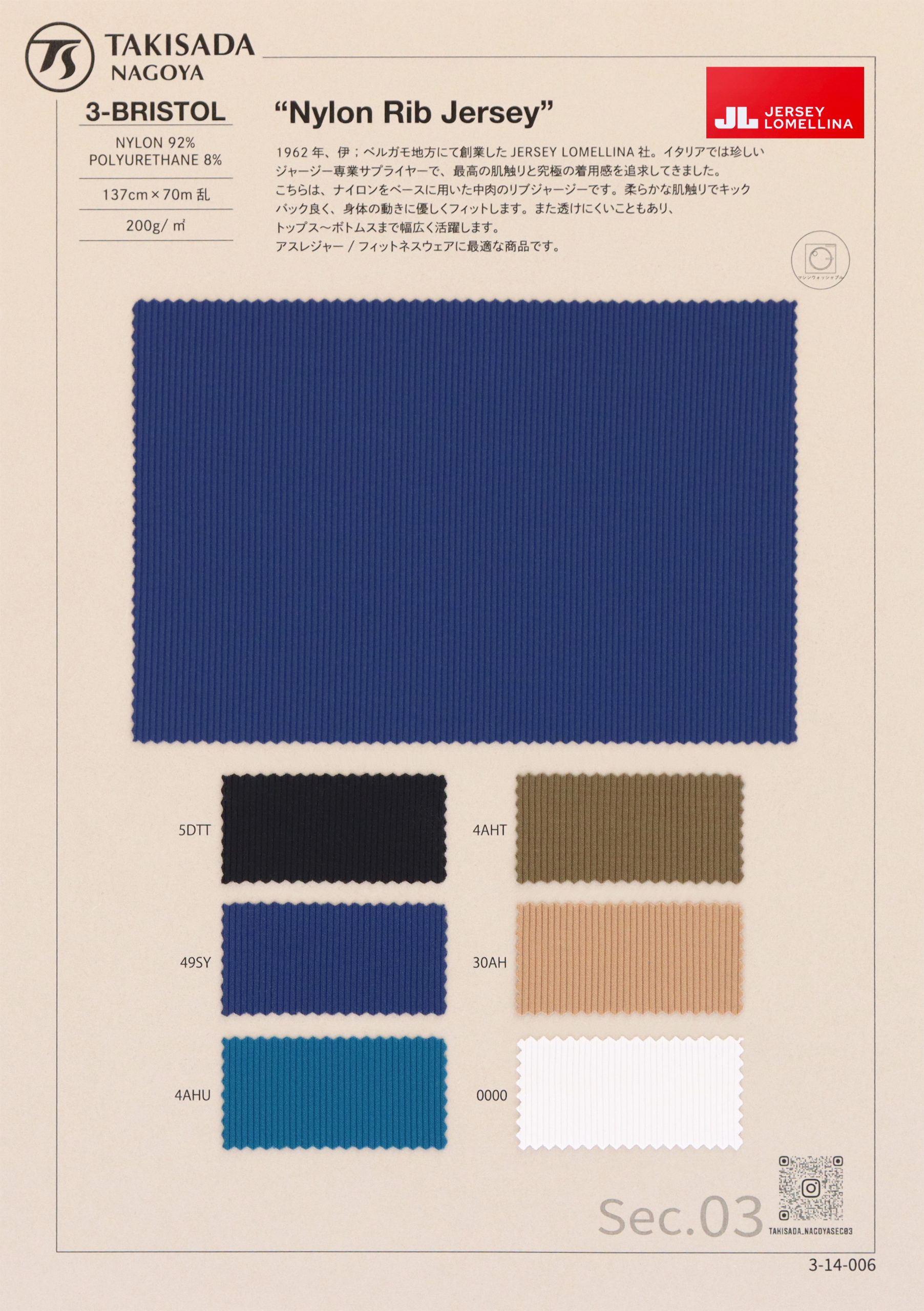 こちらは、ナイロンをベースに用いた中肉のリブジャージーです。柔らかな肌触りでキック