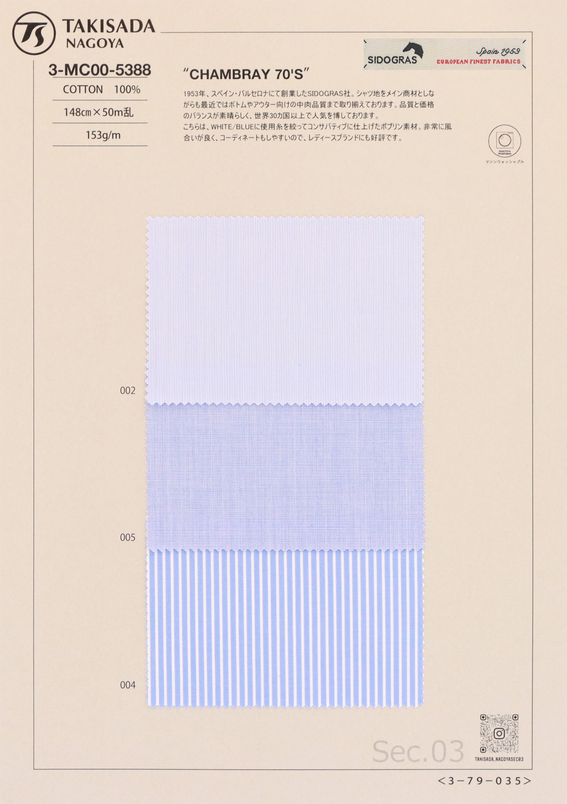 品名 :“CHAMBRAY 70'S”