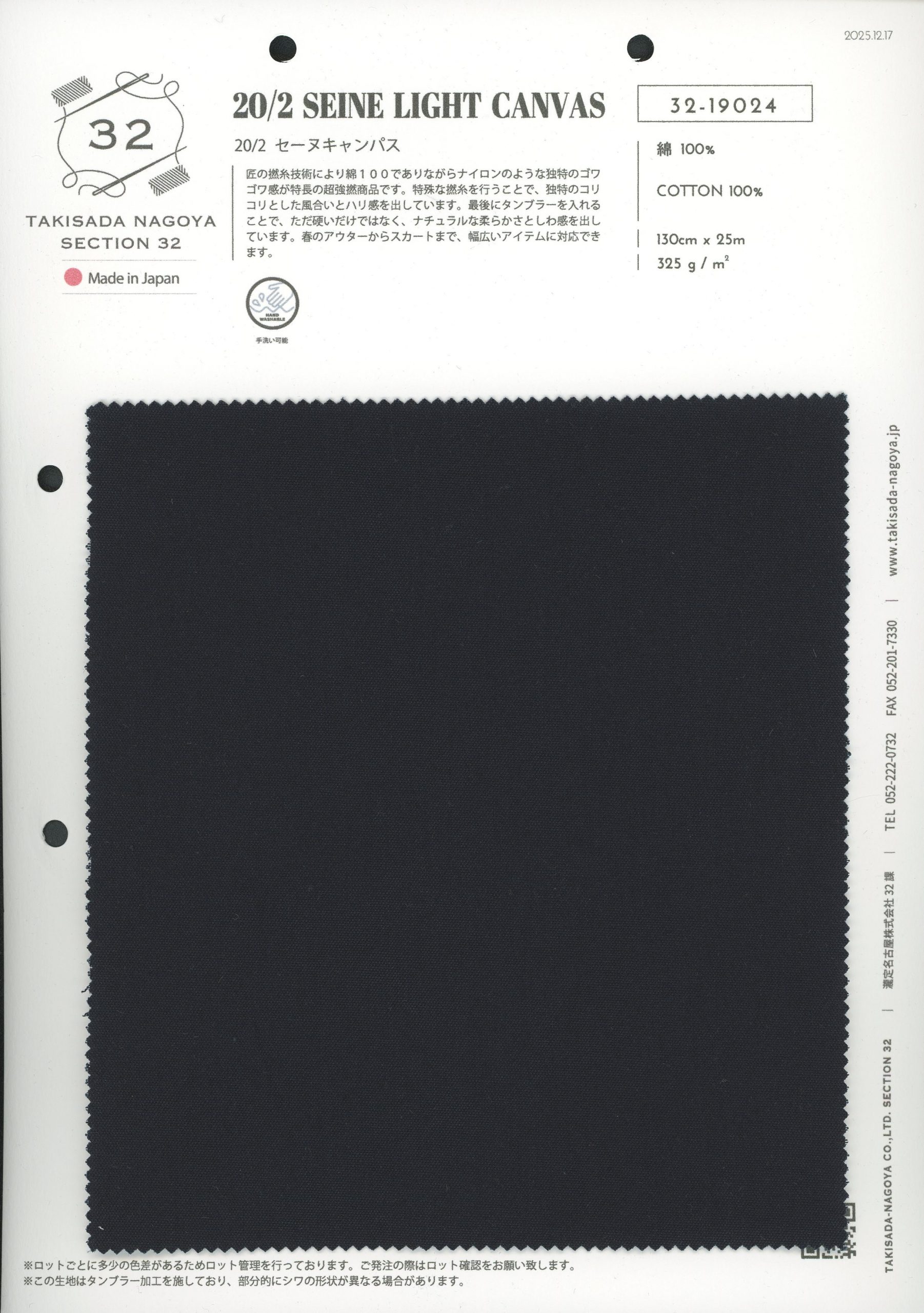 品名 :20/2 セーヌキャンパス (20/2 SEINE LIGHT CANVAS )