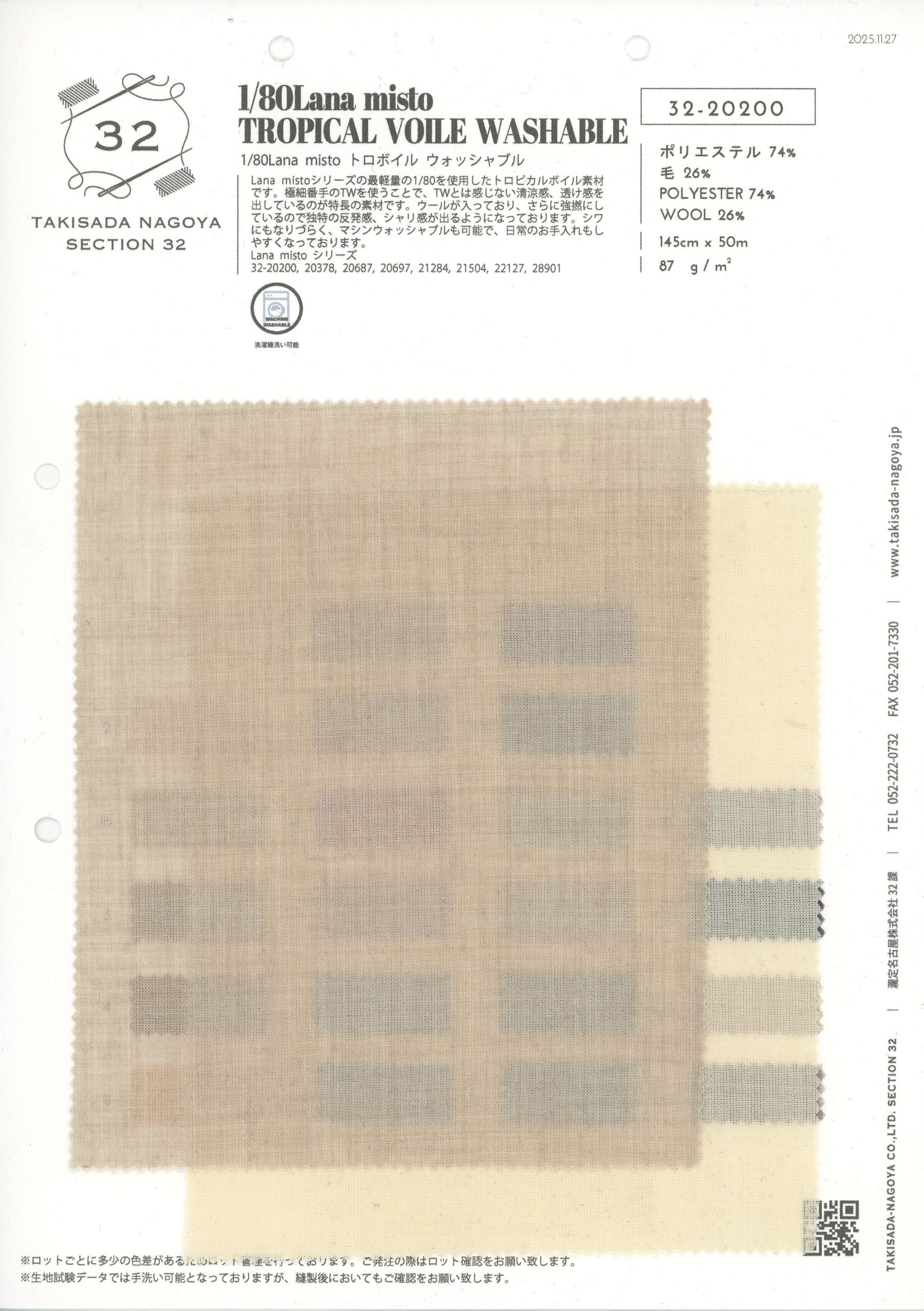 品名 : 1/80Lana misto トロボイル ウォッシャブル ( 1/80 Lana misto TROPICAL VOILE WASHBLE )