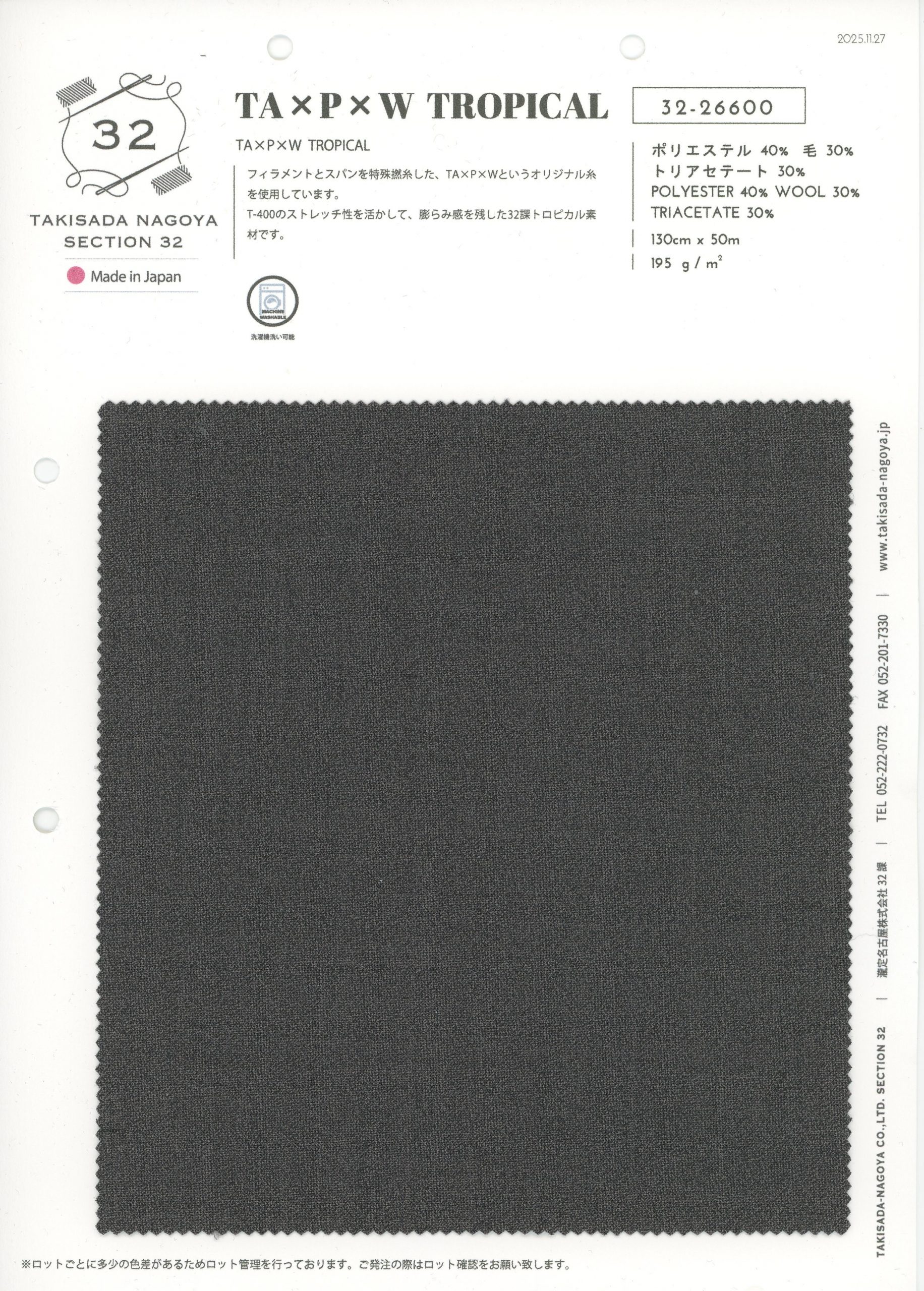 #TW#トリアセテート#マシンウォッシャブル#防しわ