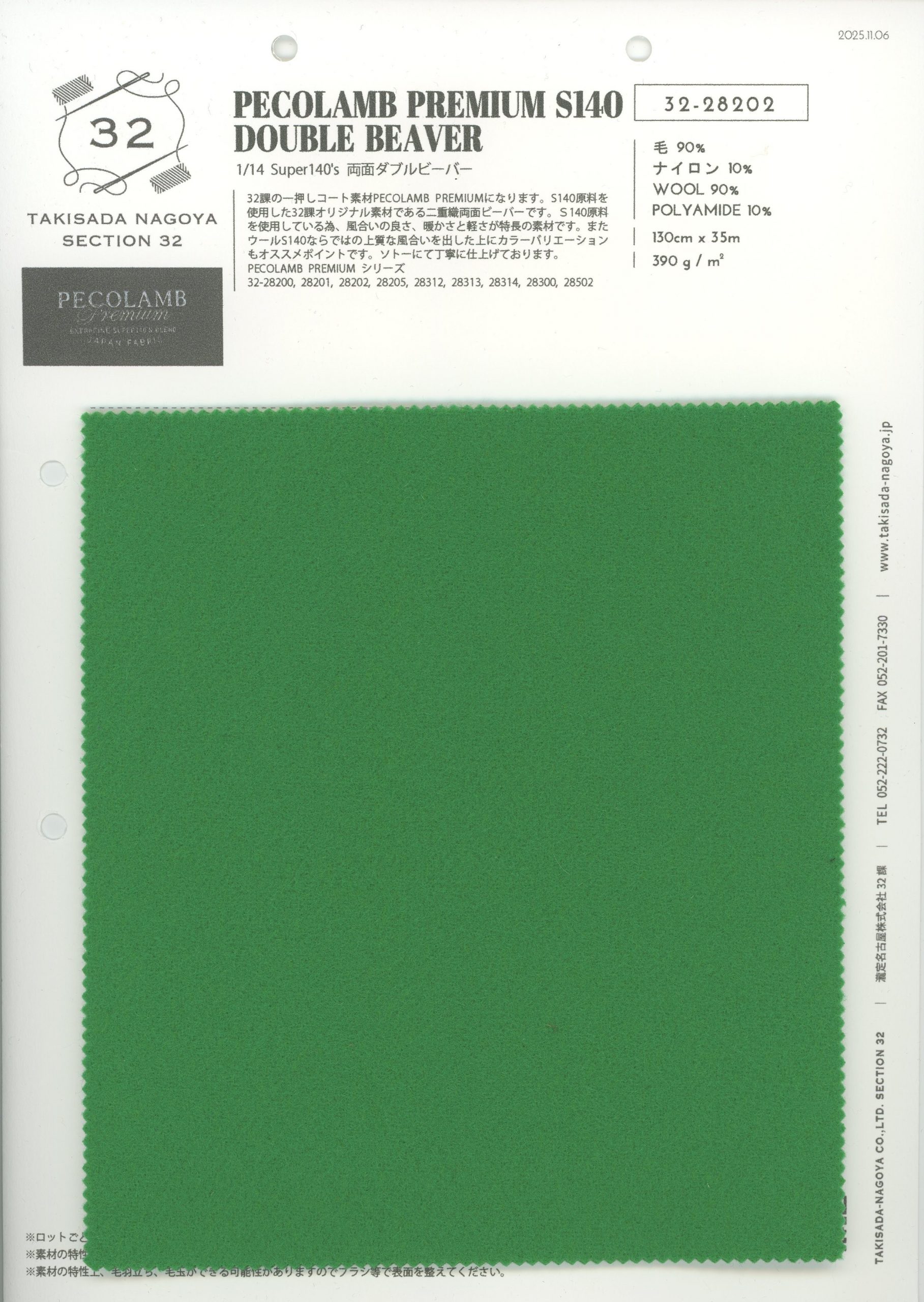 32課の一押しコート素材PECOLAMB PREMIUMになります。S140原料を使用した32課オリジナル素材である二重織両面ビーバーです。風合いの良さ、暖かさと軽さが特長の素材です。またカラーバリエーションもオススメポイントです。ソトーにて丁寧に仕上げております。