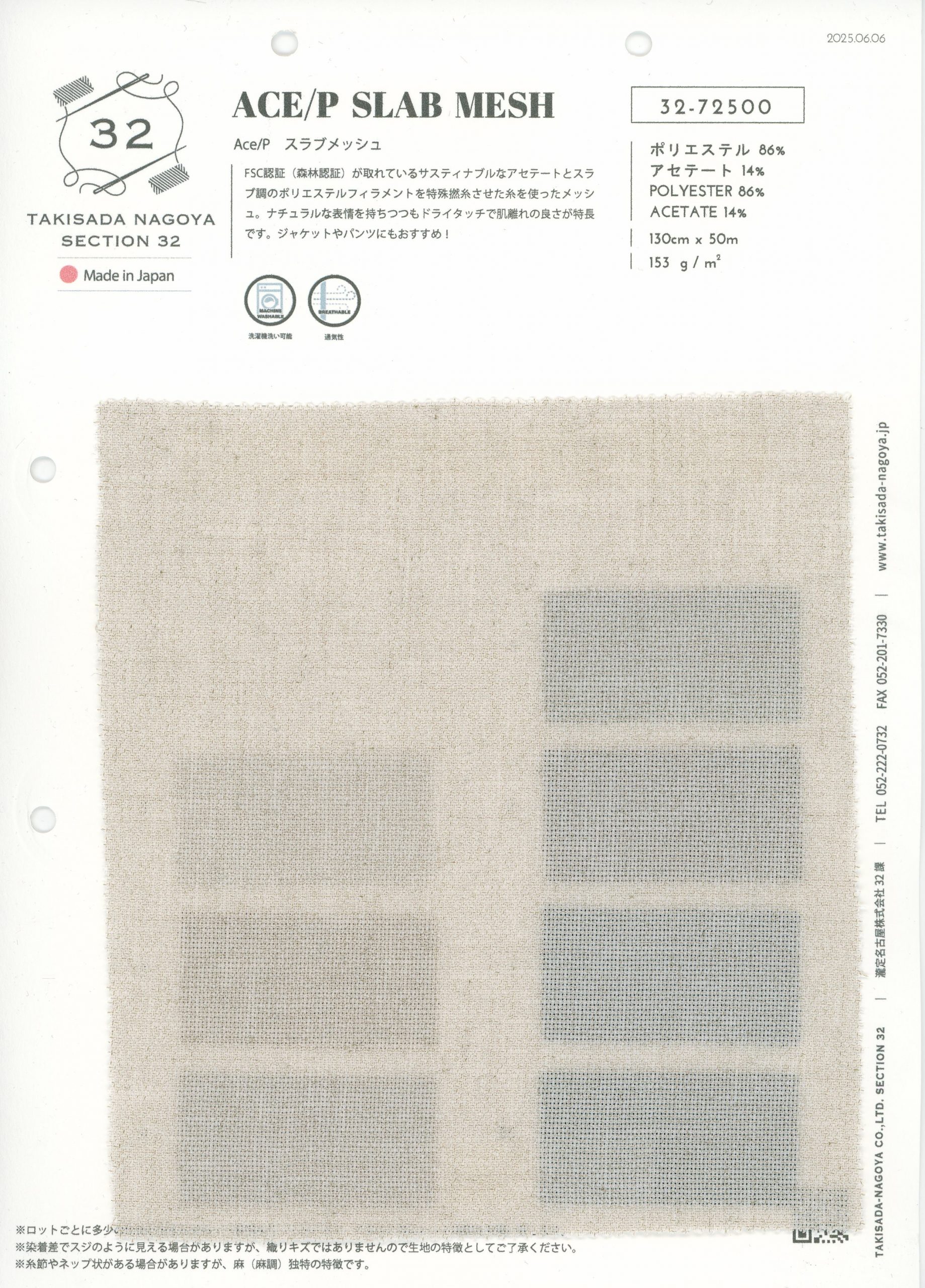 FSC認証(森林認証)が取れているサスティナブルなアセテートとスラブ調のポリエステルフィラメントを特殊撚糸させた糸を使ったメッシュ。ナチュラルな表情を持ちつつもドライタッチで肌離れの良さが特長です。ジャケットやパンツにもおすすめ!