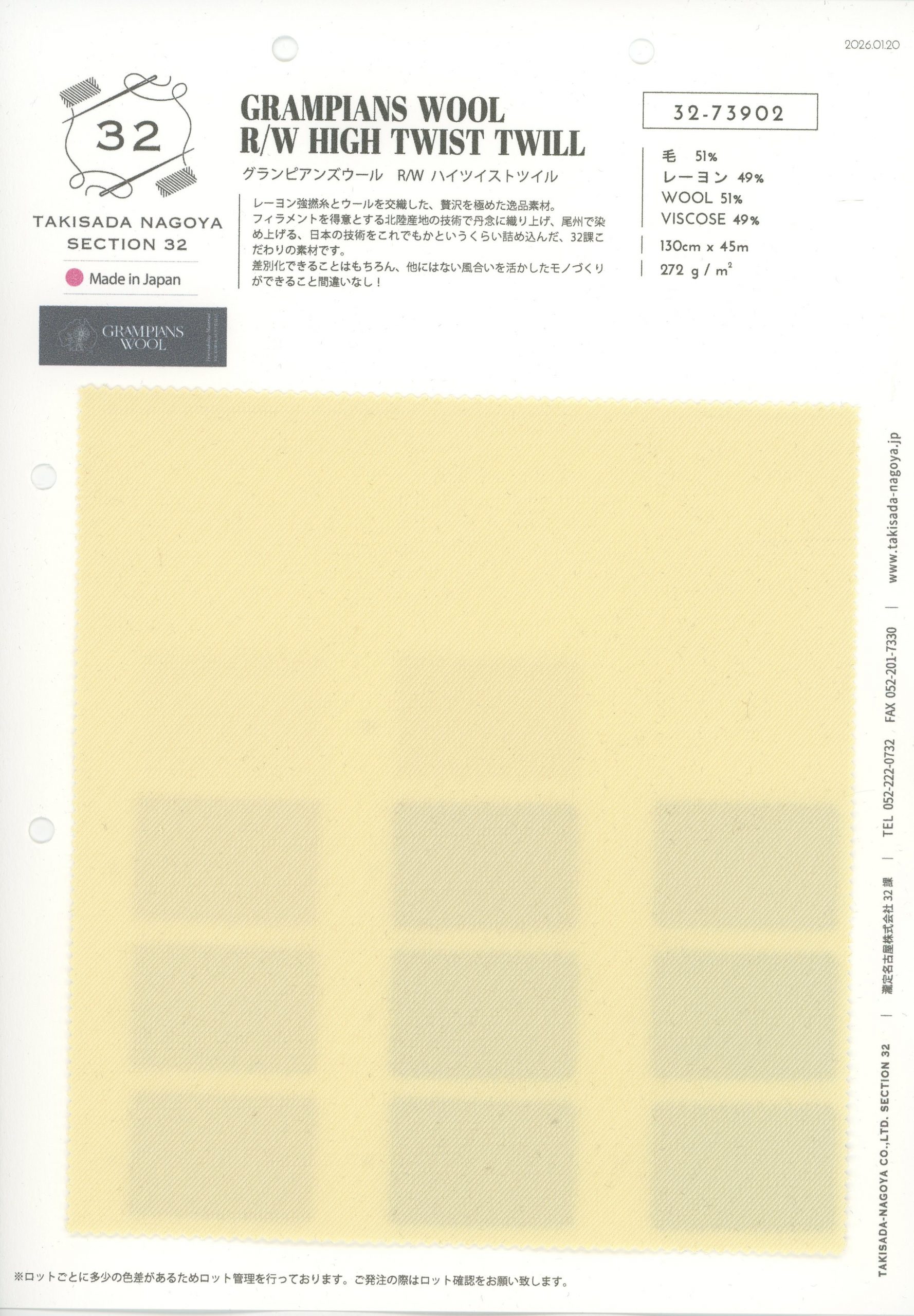 品名 :GRAMPIANS WOOL R/W HIGH TWIST TWILL