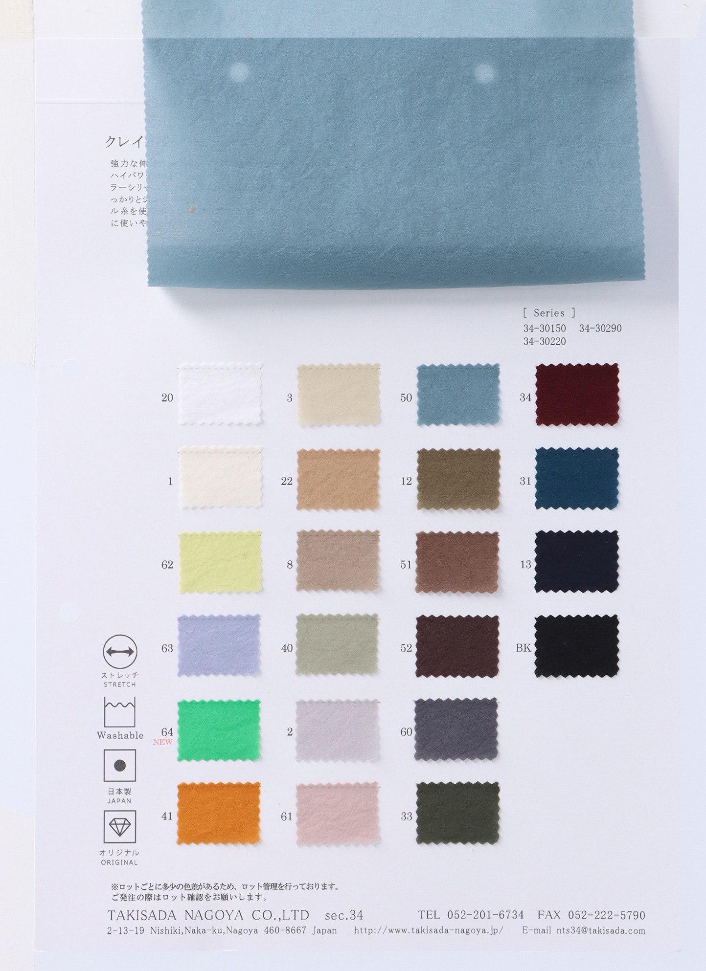 下記ボタンをクリックしてスワッチ申込リストへ追加後、スワッチ申込リストのページよりお申し込みください。