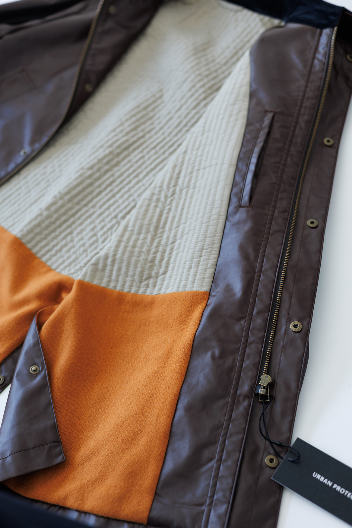 内仕様は中綿使いと鮮やかなオレンジのツイード使い
