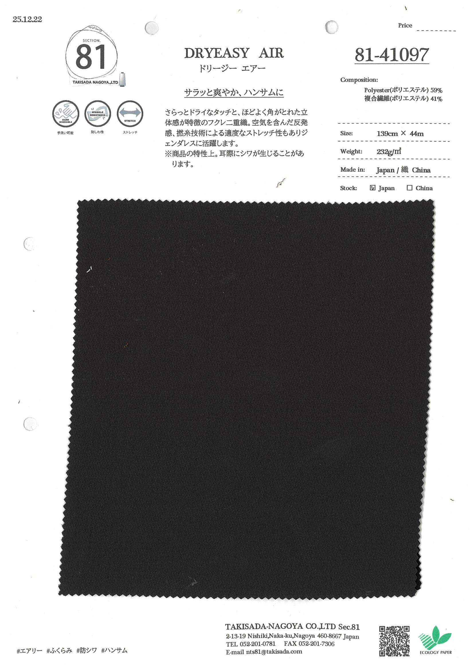 混率:Polyester(ポリエステル)59%,複合繊維(ポリエステル)41%